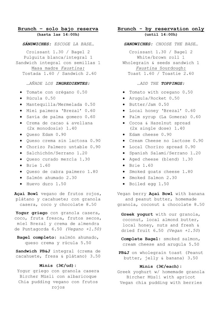 y disponible a partir de las 11:15h. Brunch solo bajo reserva. Precios y artículos pueden variar/cambiar. Consumo mínimo azotea: 5€ pp solo en bebida