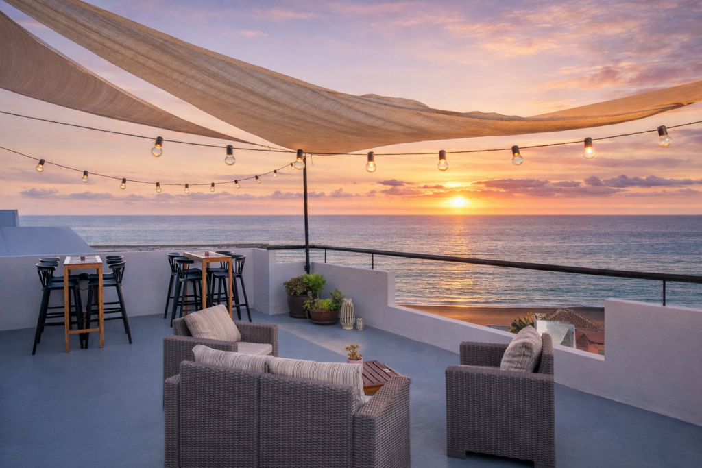 Our rooftop terrace, located on the sixth floor, is easily accessible by elevator—so there’s no excuse to miss out! Grab a drink from the Bar downstairs (self-service) and take in the stunning scenery at your own pace.